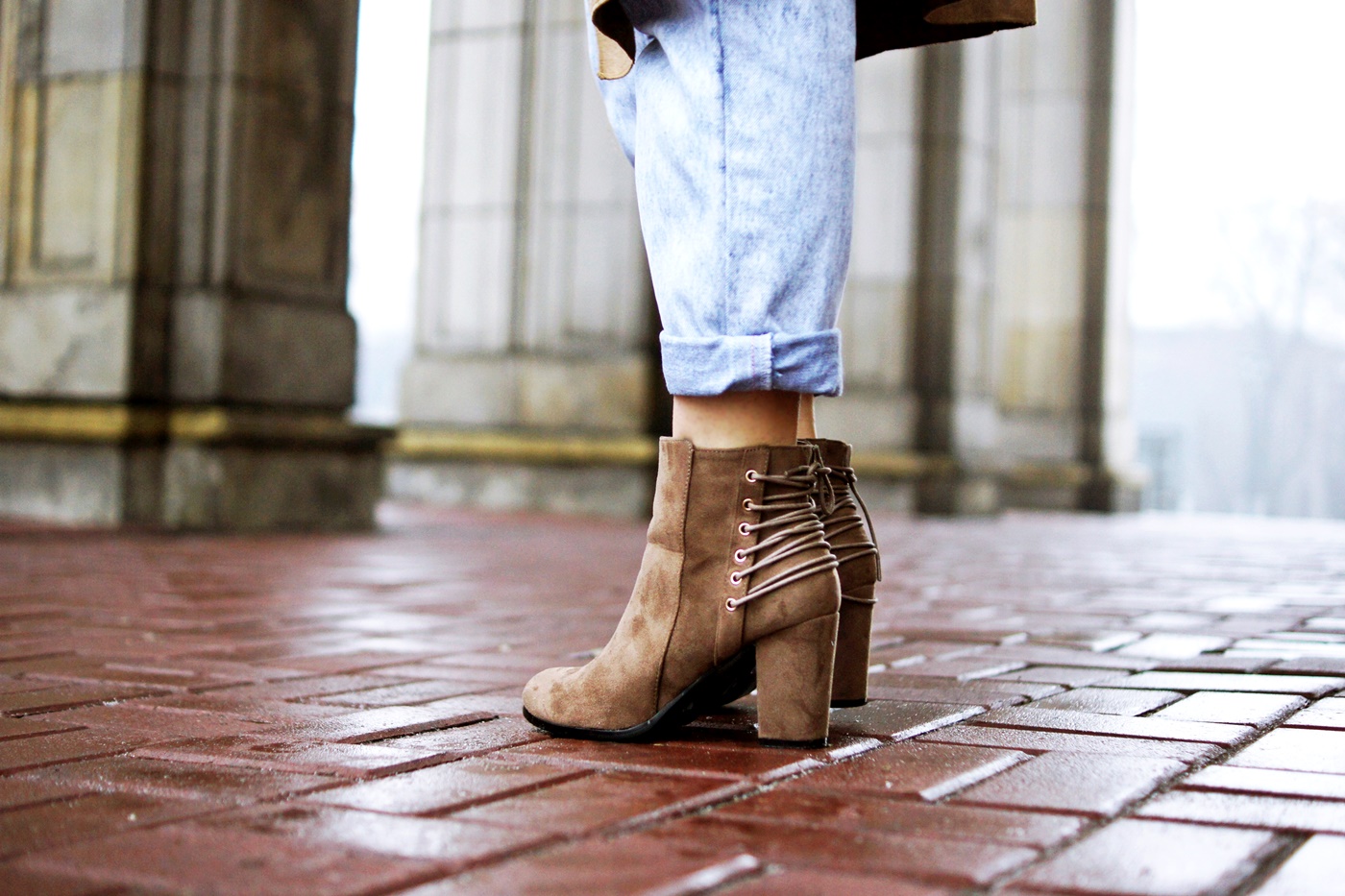 Ja dzisiaj zestawiłam je z zamszowymi botkami na niewysokim obcasie,