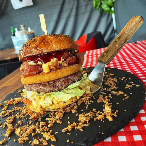 Do wyboru jest blisko 10 propozycji – od ostrzejszych, jak Pablo Escobar z papryczkami jalapeño, po wersje z grillowanym oscypkiem czy jajkiem sadzonym. Dla osób na diecie roślinnej przygotowano burgera Wege Pieczarka. Dostępne są także trzy opcje smashowane możliwe do zamówienia w zestawie z frytkami. Zimą burgery można zjeść na miejscu w ogrzewanym namiocie.