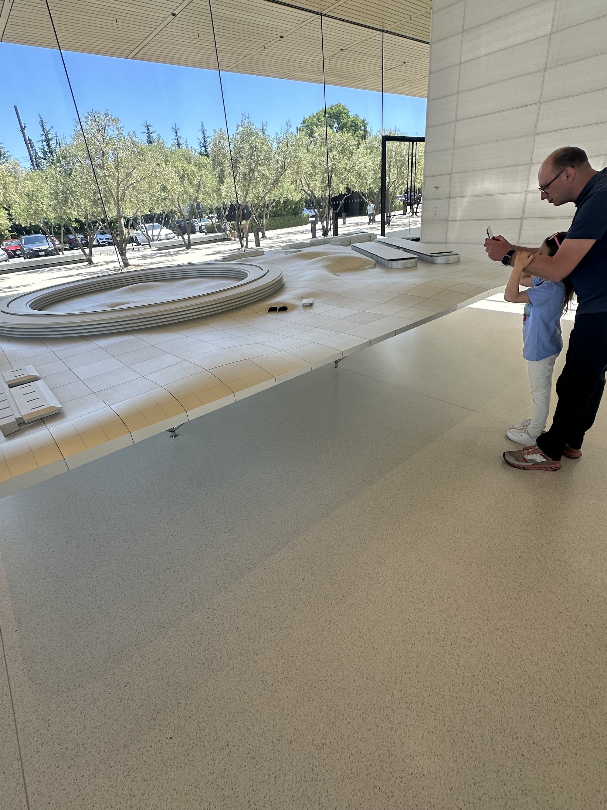 Następnym punktem wycieczki był już Apple Park, czyli kampus Apple, wielki statek UFO. Gigantyczny, ultranowoczesny budynek, którego nie zobaczycie! Warto mieć tego świadomość, by się nie rozczarować, a jednocześnie warto zajrzeć do Visitor Center i być w okolicy, aby doświadczyć tego miejsca. Apple stawia na zieleń, co sprawia, iż sam Apple Park jest praktycznie niewidoczny, możecie zobaczyć gdzieniegdzie jego fragmenty, najwięcej z tarasu widokowego w Apple Park Visitor Center, ale ten niestety jest ciut za niski, aby widzieć cokolwiek.