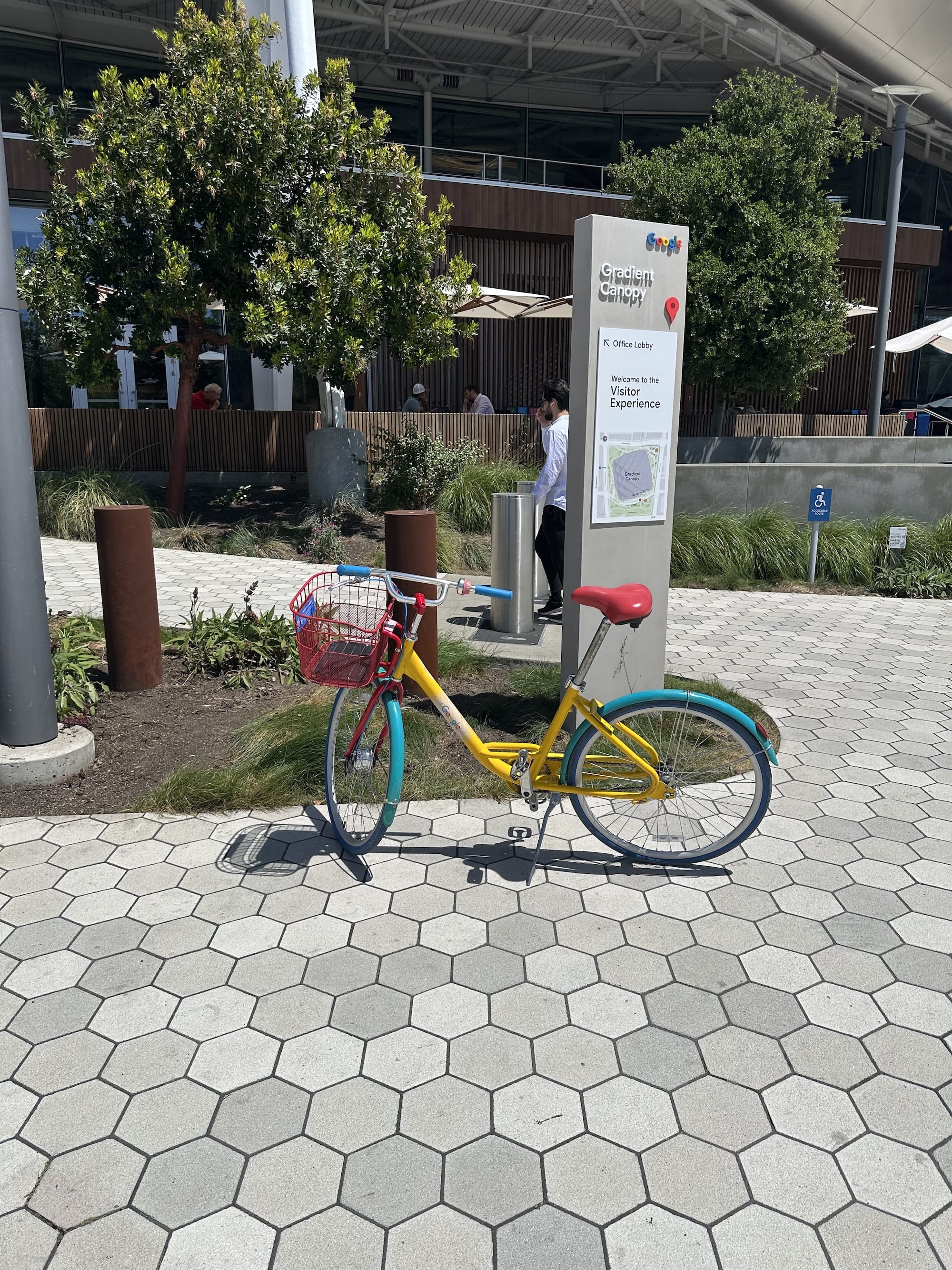 Po wizycie w Apple Park przenieśliśmy się do Googleplex, zaliczając po drodze jeszcze przejazd pod poprzednim głównym kampusem Apple, Infinitie Loop, w samym Cupertino są jeszcze dziesiątki innych budynków, w których pracują pracownicy Apple. Kampus Google położony jest natomiast w Mountain View. Sam w sobie nie robi większego wrażenia, jest po prostu zadbaną przestrzenią korporacyjnych budynków, ale właśnie ta dbałość wypada blado przy tych detalach każdego nasadzenia przy Apple Park. Na pewno na odbiór Googleplex wpływa fakt, iż do Apple podchodzę jako sympatyk, a w przypadku Google czuje się klientem największej agencji reklamowej na świecie, zostawiając im niemałą sumę miesięcznie na adsy. Jednocześnie sama przestrzeń dla gości była znacznie bardziej interaktywna dla najmłodszych, luźniejsza i absorbująca. Niemniej jest to miejsce, gdzie też po prostu można spotkać przemieszczających się Googlersów, doświadczyć przestrzeni, zakupić gadżety, zjeść lunch czy wypić kawę. Wycieczka na 30–40 minut.