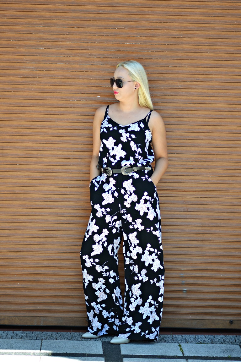 Kombinezon ONLY / Pasek TUTAJ / Szpilki MANGO / Okulary RAYBAN