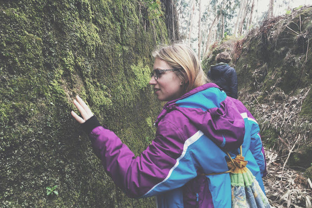 The next day, despite uncertain weather with heavy clouds and big chances for rain, Ceili was brave enough to climb up to Castelo with me and Jorge. There were horses on the way and lots of nature. And Castelo was proud as always. Silly rock which does not want to fall down. We sat there admiring the beauty surrounding us. Feeling explorey our steps lead us higher, just to find a church and a cottage, and a shelter carved in the rock. I do not know what this place was, but the curiosity stayed with my heart.