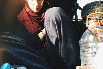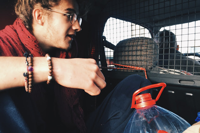 Step by step. It was difficult to find a lift from Porto de Mós. Once we did, the guy who gave us a ride next was so pessimistic that it would get stuck all over you. Emile forgot his phone from this car (well... sounds almost like Daga forgetting hers from a car of girls who dropped us off in Milan), fortunately we got it back. The next we got into... a trunk! The two guys who took us in looked like had adventures with drugs harder than weed or LSD. Don't give me the look. I know. Anything could had happen, but we are both safe and sound, and sometimes it is worth to trust a person. If a person makes mistakes, it does not always mean he or she is a bad human. Thanks to them we got 30 kilometers away from Coimbra, where finally took us dad with a son having their own business (I still have their card hidden somewhere).