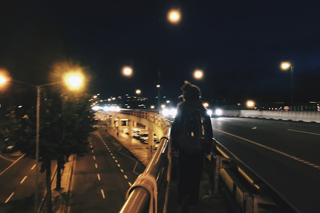 We had visited Braga before, during one week long training, so the city was not so unfamiliar to us. At least to me. I was sure it will be easy to me to find the right way through, but I forgot that night makes things look different. The walk to a place where we could find another ride easily (however it was quite late already...) took not 15 minutes but almost an hour. One of the points on our sightseeing tour took visiting closed for traffic part of a highway, where we were not supposed to even be, I guess... From there we had to climb over a fence. Fortunately, our perfect spot was right across the street from us. As soon as we took off our backpacks... a police car stopped by us!