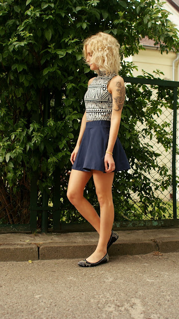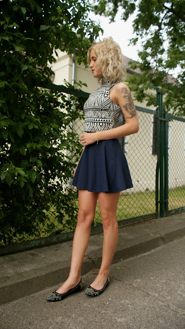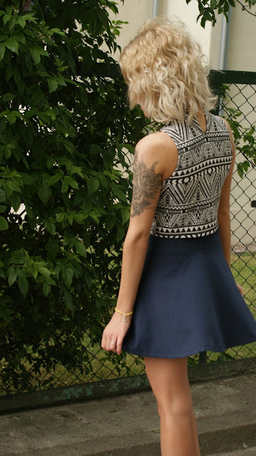 Dopełnieniem stylizacji jest rozkloszowana spódniczka z Bonprix w kolorze granatu, zapraszam do zdjęć :)