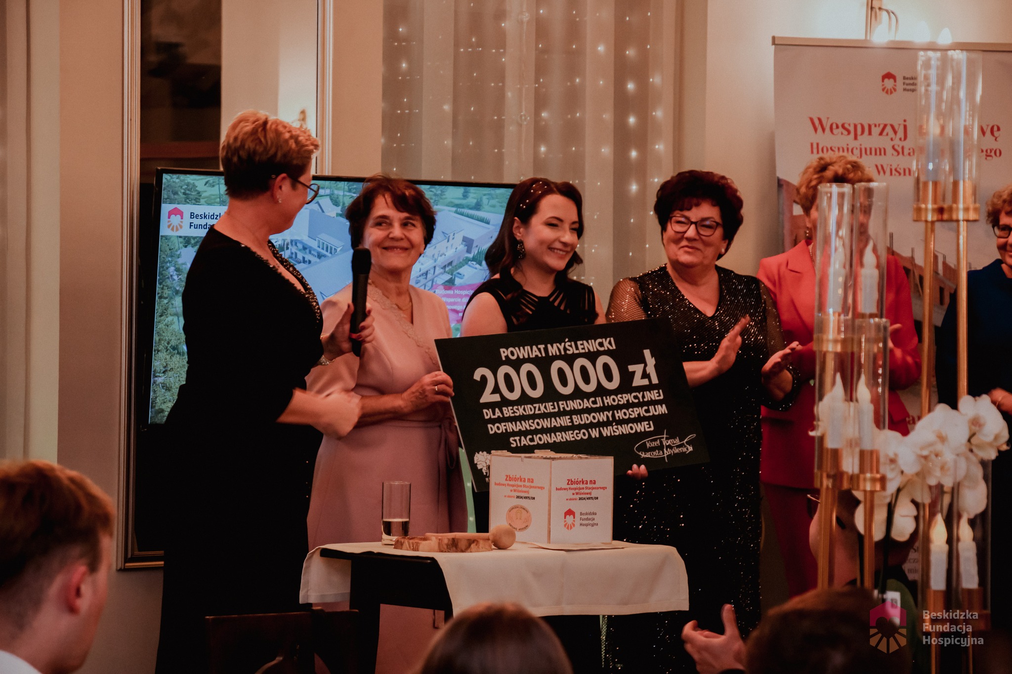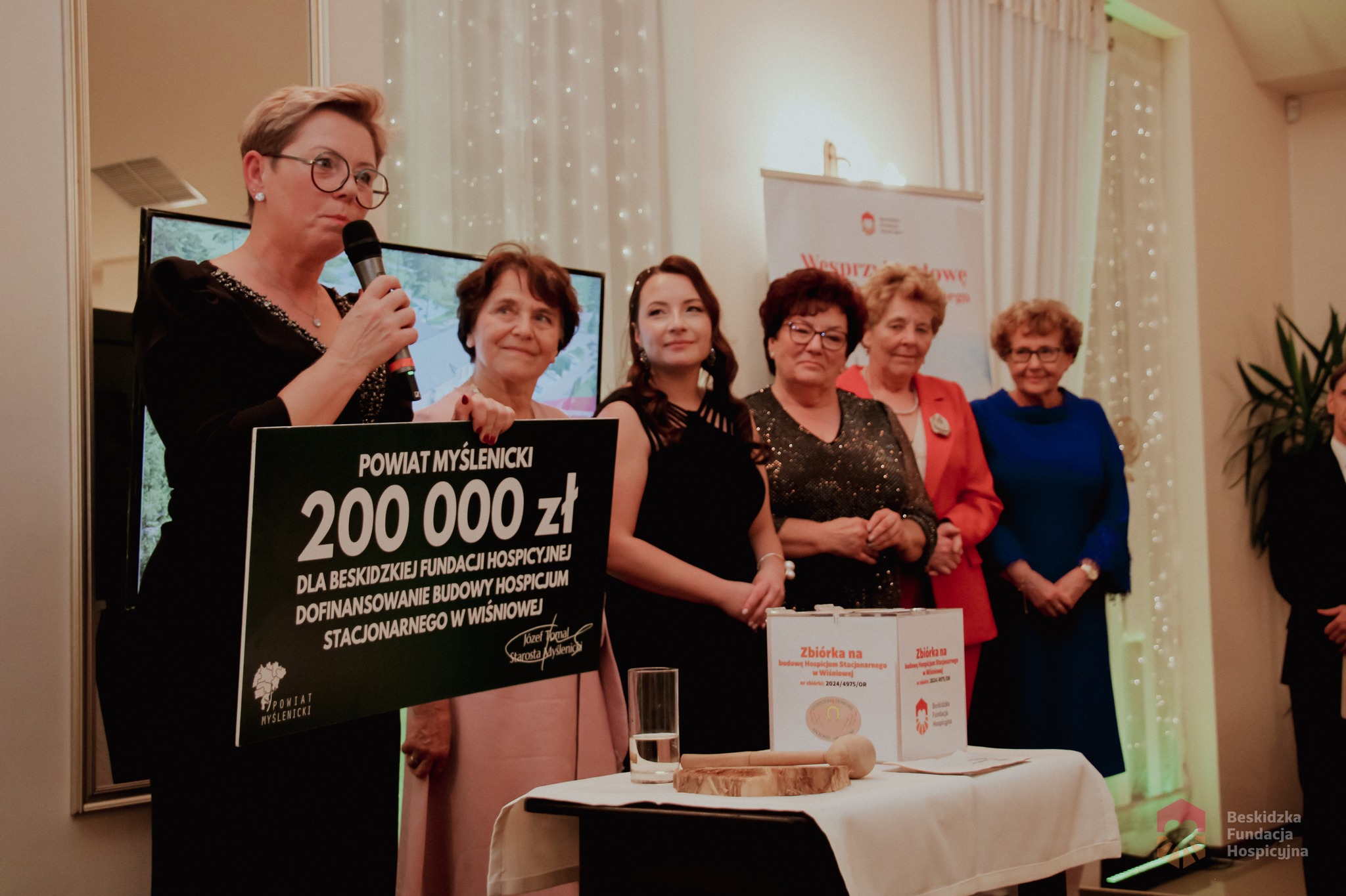 – Dzięki Wam – drodzy darczyńcy, wolontariusze i ludzie wielkich serc – budowa Hospicjum Stacjonarnego w Wiśniowej została zasilona tak wielką kwotą, która w przyszłości wspomoże zakup wielu okien do budynku Hospicjum. Dziękujemy wszystkim, którzy licytowali na balu fanty i vouchery, dziękujemy wszystkim obecnym osobom, bo każda cegiełka to wsparcie tego szczytnego celu. Mamy nadzieję, iż bawiliście się świetnie.