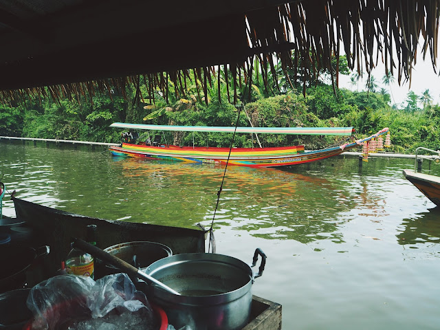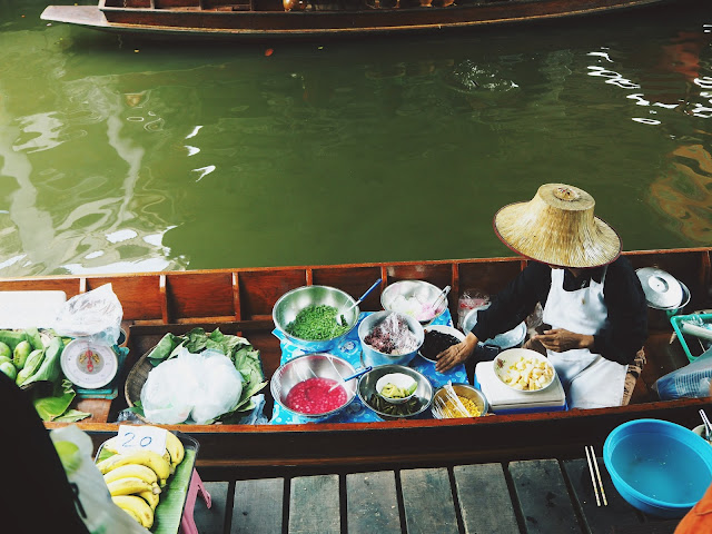 Wodny targ Taling Chan to kulinarny zawrót głowy. W jednym miejscu czuć milion rożnych zapachów, a przy tym towarzyszą nam pływające ryby oraz łódki z jedzeniem. Robi wrażenie.