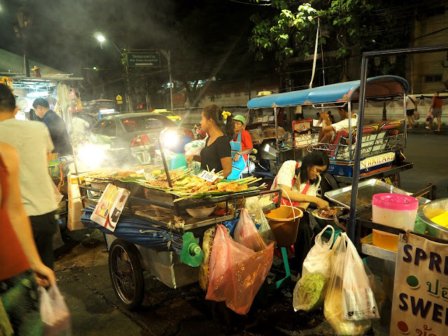 Po długiej i męczącej podróży przyszedł czas na jedzenie. W Bangkoku polecam ulicę Khao San. Znajdziemy tam mnóstwo stoisk z Azjatyckim jedzeniem, owocami oraz stragany z ubraniami.