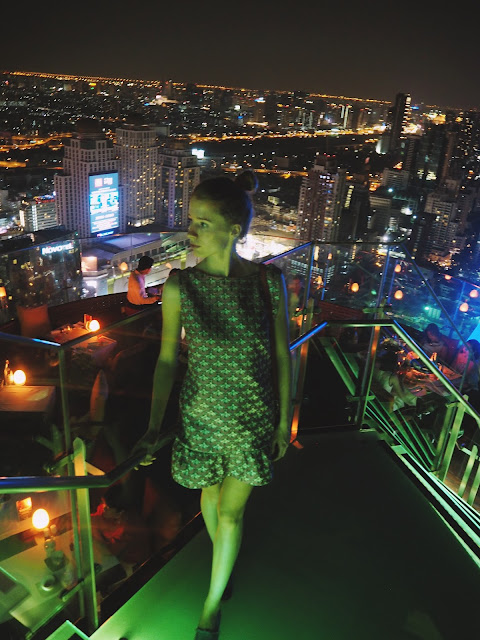 Najpiękniejszy widok na panoramę Bangkoku jest z 56 piętra w Sky Red. Można się wybrać na kolacje ale również na drinka, a przy okazji zrobić interesujące zdjęcia. Obsługa wyszkolona w tej dziedzinie, także bez problemu można polegać na kelnerach-fotografach. :) Cena za drinka ok 400 bathów (12 euro).