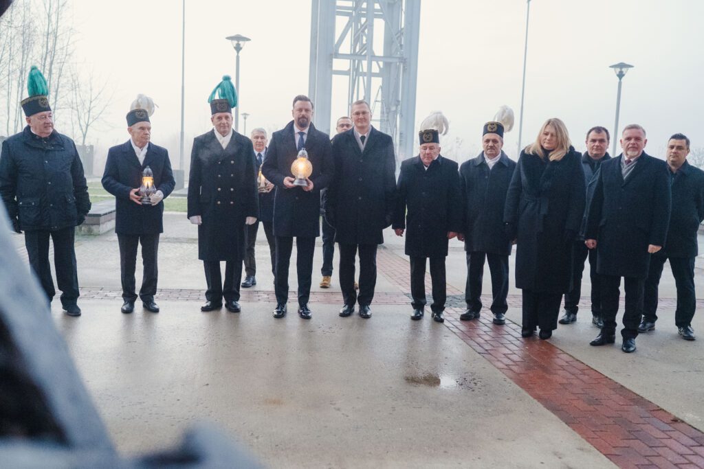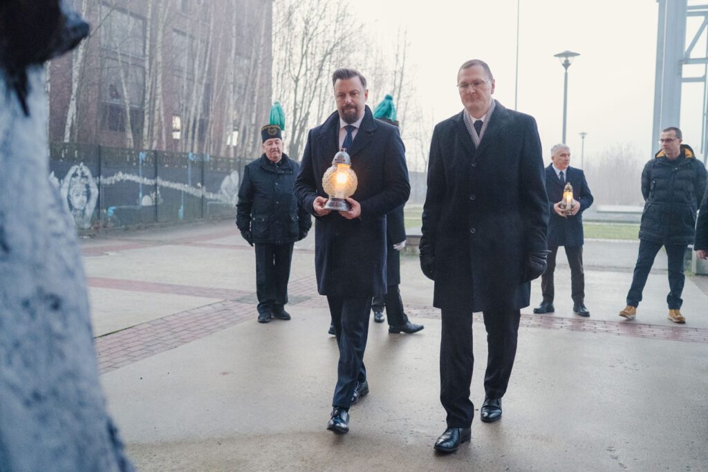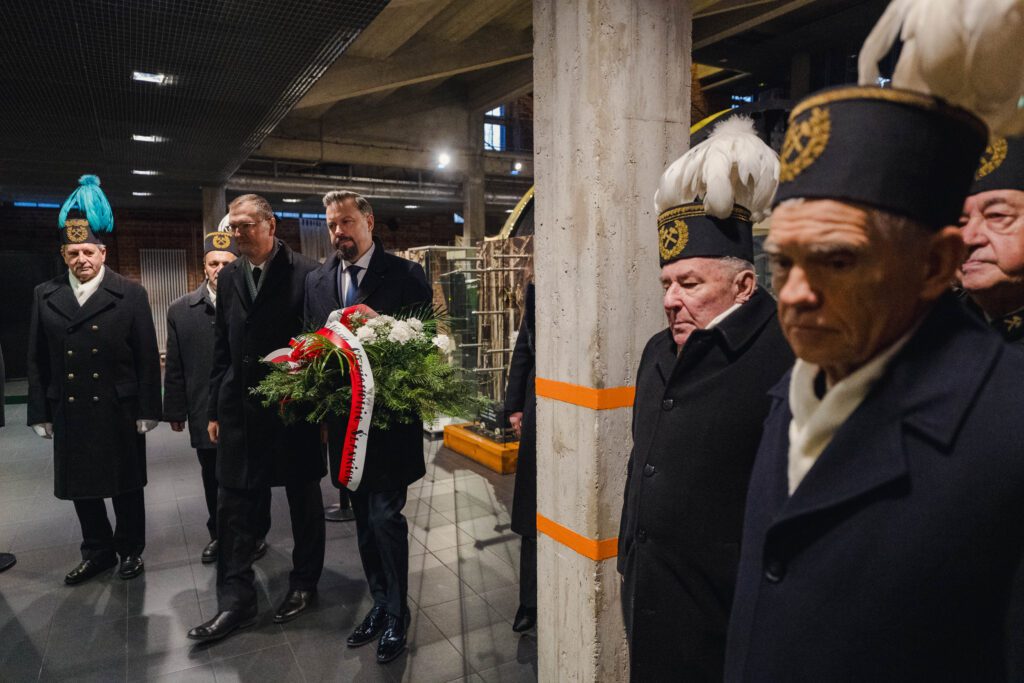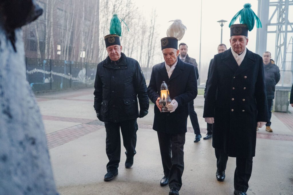 Władze miasta niosące lampkę pamięci podczas porannej części Barbórki