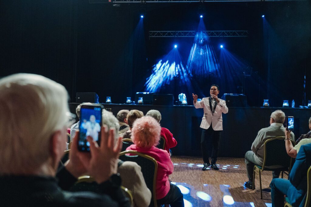 Alexander Martinez wśród publiczności – artysta przechodzi między widzami, budując wyjątkową atmosferę