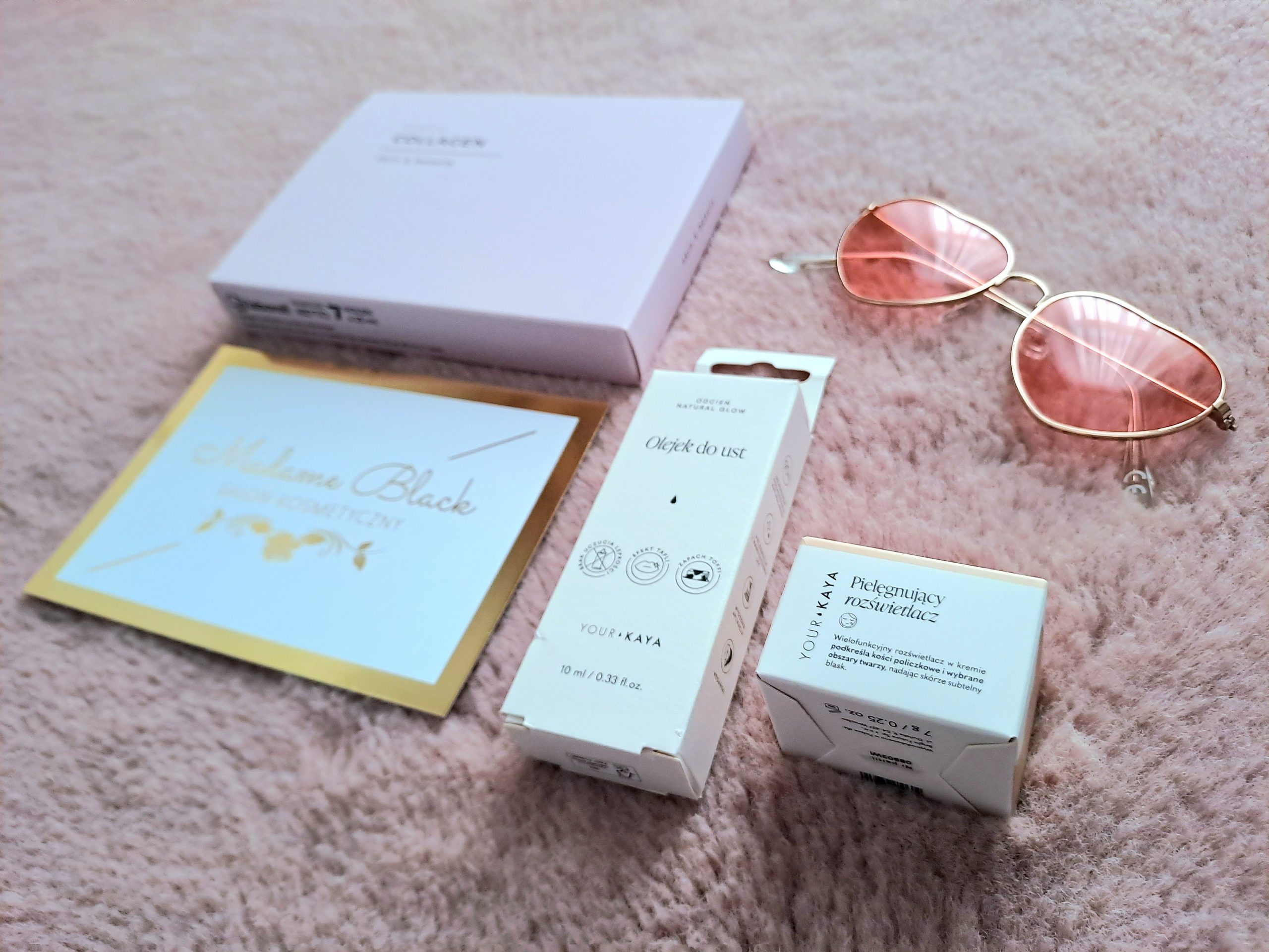 - kosmetyki od Your Kaya – olejek do ust i rozświetlacz,