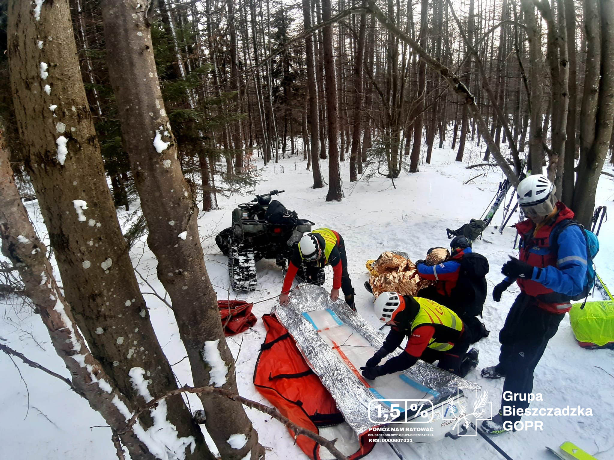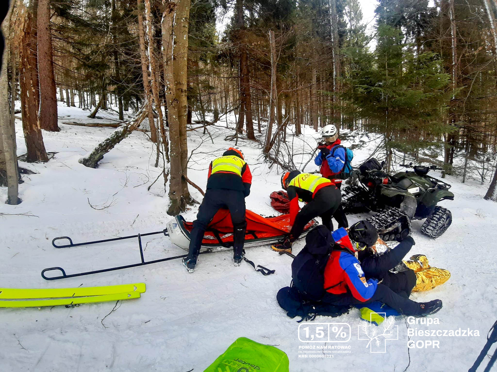 Góry to nie tylko turystyka, ale i trudne warunki pracy. GOPR-owcy udzielali pomocy mężczyźnie, który doznał poważnego urazu podudzia podczas prac leśnych. Po udzieleniu pierwszej pomocy medycznej, poszkodowany został przetransportowany do miejsca, gdzie mogła dojechać karetka pogotowia.