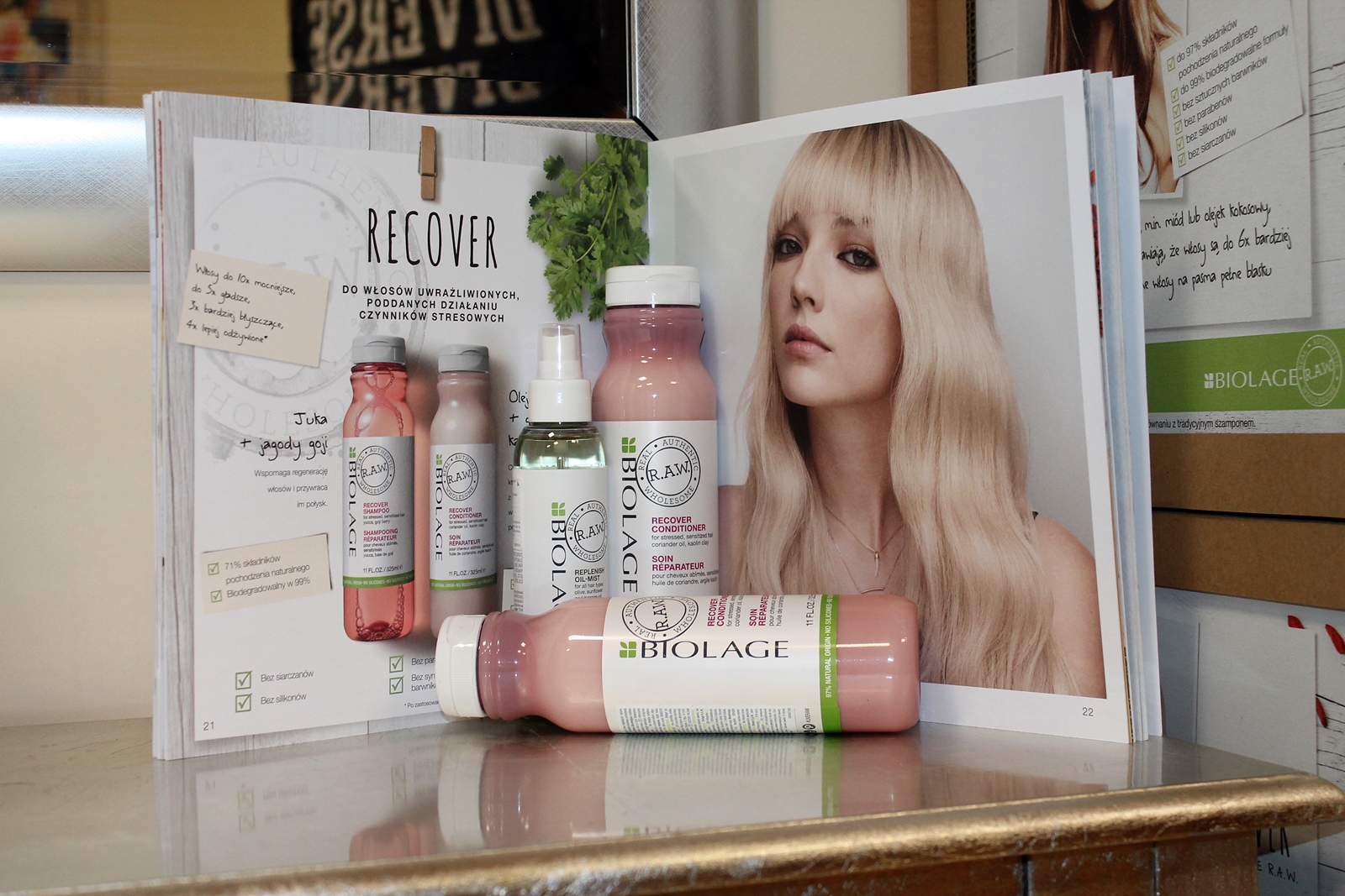 Chciałabym podzielić się z Wami swoimi odczuciami po rytuale pielęgnacyjnym dla moich włosów z BIOLAGE R.A.W., który miałam przyjemność przeżyć w Salonie Fryzur Krystyny Gleń w Chodzieży. Moje włosy są długie ale niestety przesuszone od częstego farbowania i eksperymentów za młodszych lat. Więc takie zabiegi są wskazane dla nich. Pierwszy zabieg miałam wykonany 24 października, drugi 14 listopada. W salonie wykonali mi rytuał dla włosów uwrażliwionych, poddanych działaniu czynników stresowych. Po dobraniu szamponu, odżywki, maski i olejku, które najlepiej będą współgrały z moim typem włosów przeszłyśmy do zabiegu. Najpierw umyto mi włosy szamponem, w moim przypadku był to szampon Biolage Recovery, który wspomaga regenerację włosów i przywraca im blask. Po spłukaniu szamponu Pani nałożyła mi odżywkę Biolage Recover. Cudowna formuła, w skład której wchodzi detoksykujący olej z kolendry i glinka kaolinowa, wzmacniająca włosy oraz poprawiająca ich kondycję.