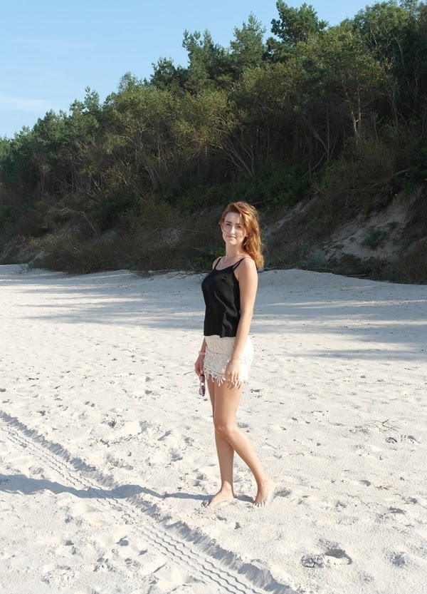 Co do zdjęć - kolejna porcja prosto znad morza! Pamiętam jak długo szukałam spódniczki z gipiury i jaka rozczarowana byłam, iż nigdzie nie mogę takowej znaleźć za rozsądną cenę. I właśnie wtedy, kiedy już prawie zupełnie o moim marzeniu zapomniałam, znalazłam coś, co od razu musiało znaleźć się w mojej szafie. Przedstawiam Wam moją piękną perełkę na tle jeszcze piękniejszego Bałtyku !