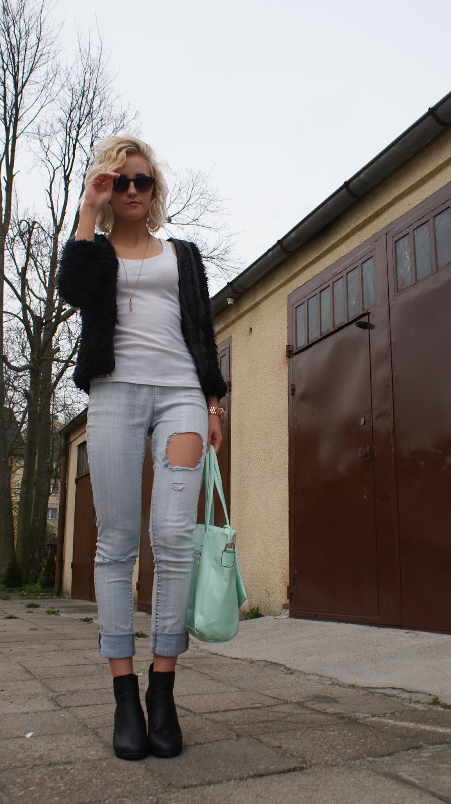 Dziś przychodzę do Was z stylizacją, użyłam do niej między innymi jeansów, co jest u mnie rzadkością jak wiecie. Ostatni raz spodnie w stylizacji pojawiły się zimą. Na co dzień noszę legginsy, cenię wygodę ale też większość moich spodni jest na mnie za luźna a zakładanie paska jest dla mnie straszne. Choć chyba w końcu muszę znaleźć dla siebie idealne rurki co będzie trudne ;)