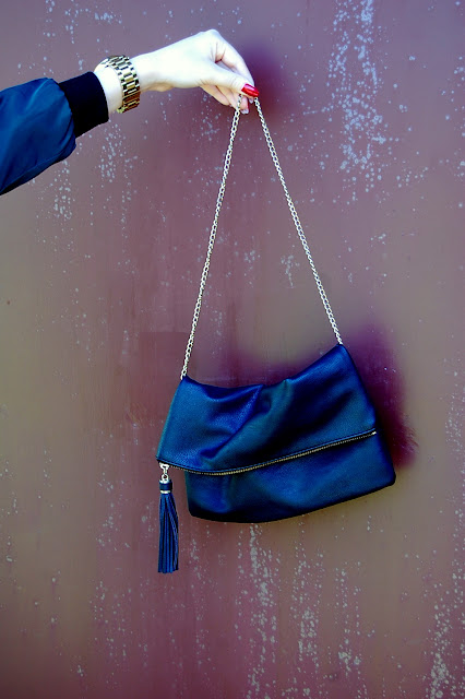 Postanowiłam nie łączyć go z trampkami, prostym t-shirtem, legginsami czy jeansami, ale iść nieco w inną stronę... beżowe spodnie, szpilki, eleganckie dodatki przełamane kolorową bluzką.