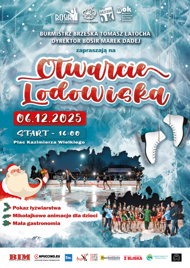 O godzinie 16.00 w sobotę 6 grudnia zostanie otwarte lodowisko na placu Kazimierza Wielkiego w Brzesku. W programie pokaz łyżwiarstwa, mikołajkowe animacje dla dzieci oraz mała gastronomia.