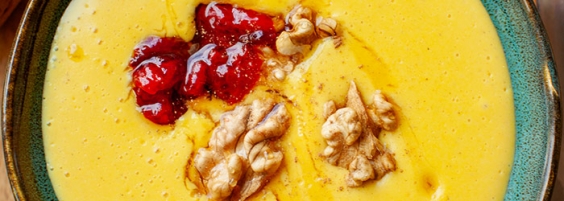 Obłedny smak "pumpkin spice" i mój lubiony budyń jaglany. Z tego połączenia musi wyjść coś pysznego! Kremowy budyń z ugotowanej na mleku kaszy jaglanej, tym razem z dodatkiem pokrojonej dyni, a także aromatycznych przypraw korzennych jak cynamon, kurkuma, gałka muszkatołowa i mielony imbir. Posłodzony miodem i dla chętnych doprawiony dodatkowo masłem orzechowym.