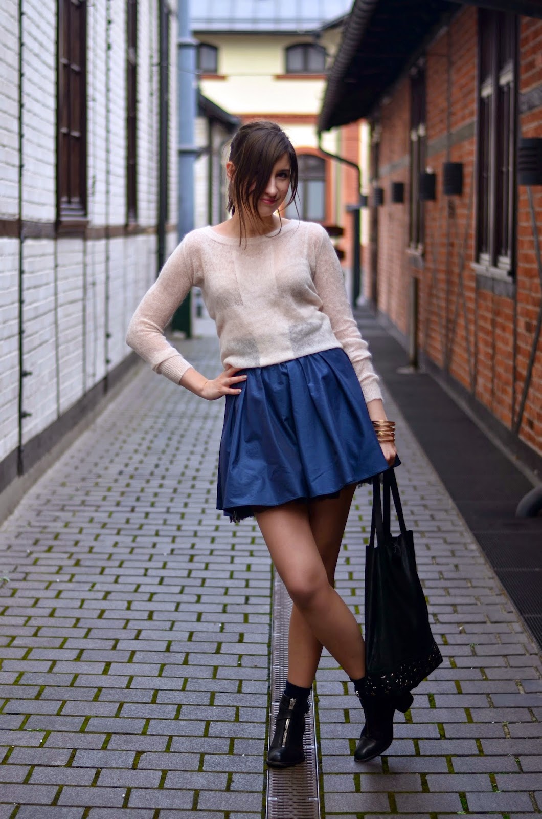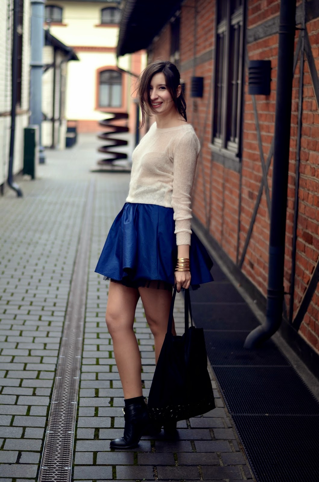 Jak już ustaliłam na początku bardzo daleko mi do bycia Kopciuszkiem, ale czasami lubię "księżniczkowe" ubrania :) W tej spódnicy właśnie tak trochę się czuję - kupiłam ją już jakiś czas temu i przez cały czas jest skarbem w mojej szafie. Lubię zestawiać ją w różny sposób, tym razem z delikatnym swetrem oraz lekko rockowymi butami i torebką, na zasadzie kontrastu :)