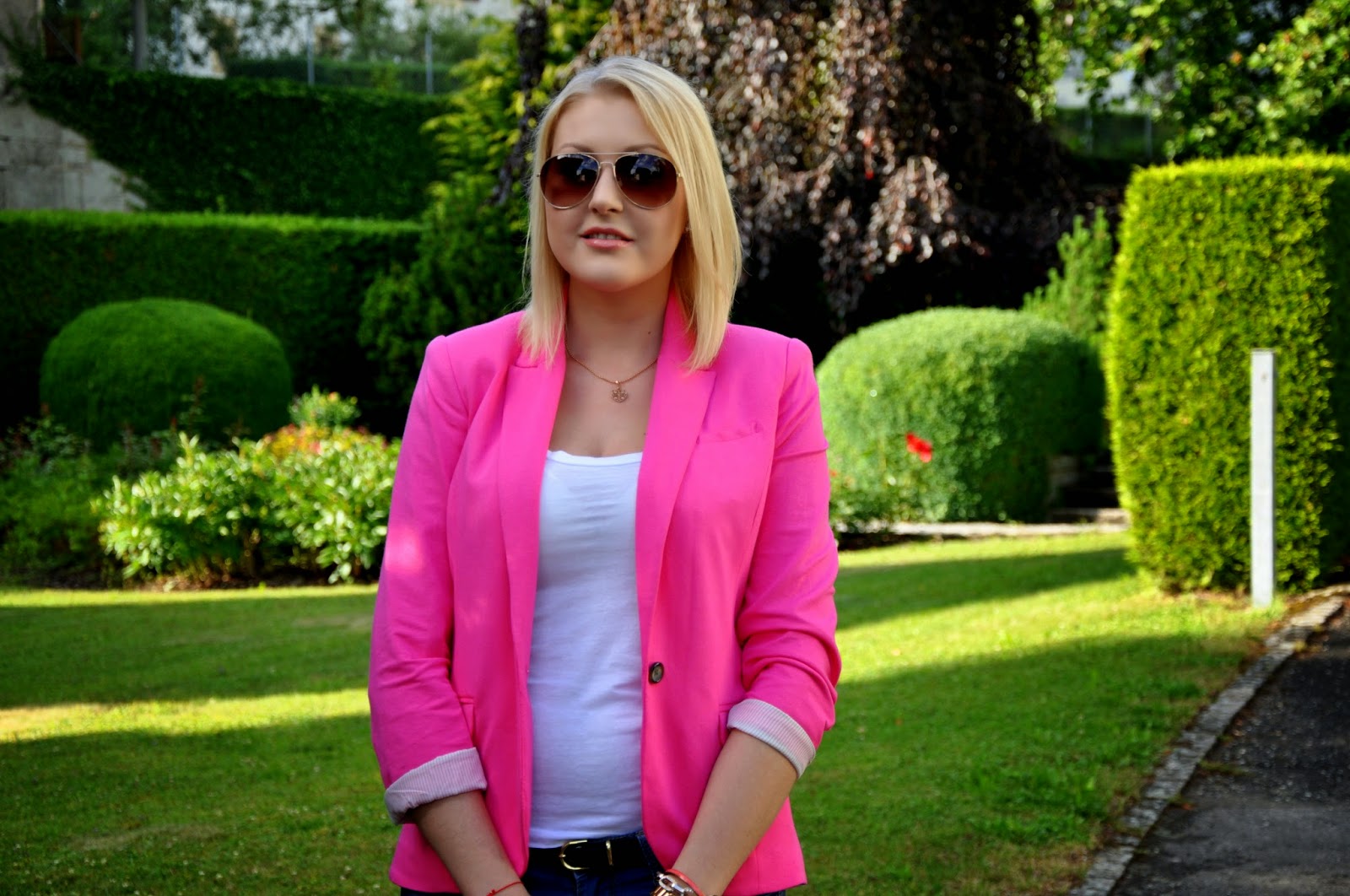 H&M blazer / Tally Weijl jeans / Tally Weijl t-shirt / Daichmann shoes / Vj- Style bag / Sinsay sunnies / Fossil watch / Apart red bracelet / Bellast gold bracelet / Thomas Sabo necklace