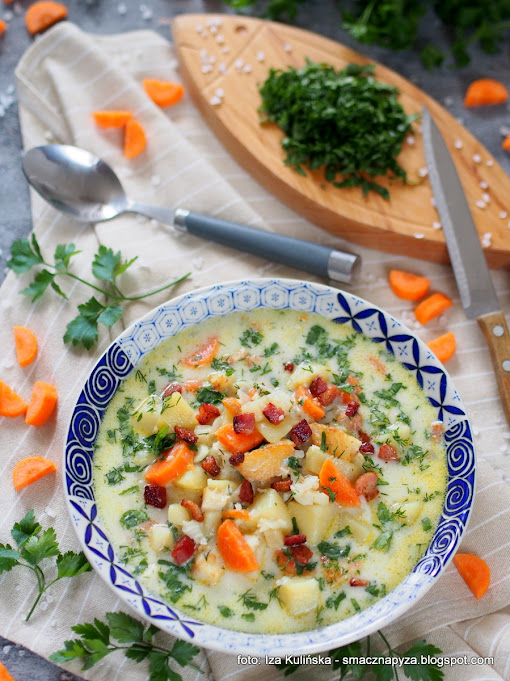 Chowder to zupa rybna. Ugotowałam ją z halibutem. |