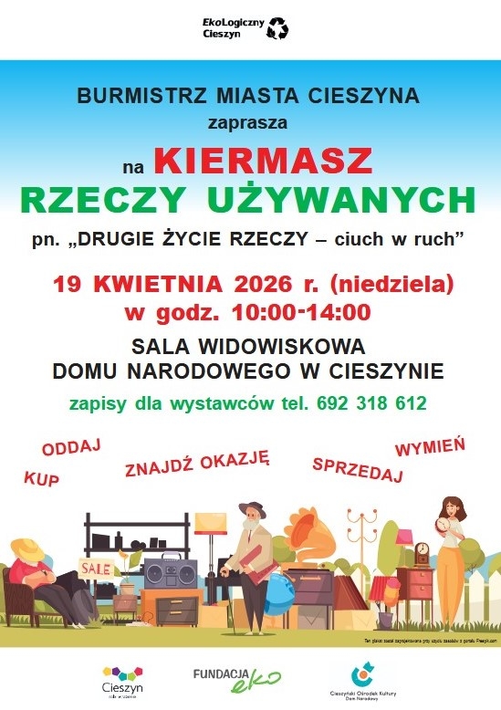 Dla wystawców przygotowane zostaną bezpłatne stoły i stoiska, jednak organizatorzy przypominają, iż podczas kiermaszu będzie można handlować wyłącznie odzieżą, obuwiem i i akcesoriami ubraniowymi, takimi jak torebki, paski, rękawiczki czy nakrycia głowy. Mieszkańcy Cieszyna zainteresowani wystawieniem swoich rzeczy na sprzedaż lub wymianę oraz organizacji własnego stoiska proszeni są o kontakt pod numerem tel. 692-318-612.