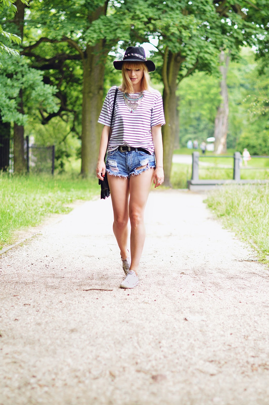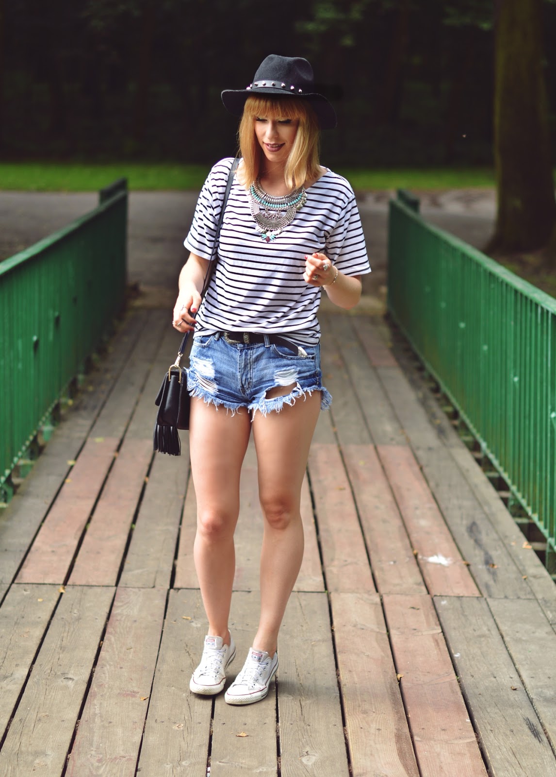 bluzka - Dresslink / szorty - Twinkledeals / kapelusz - Zaful / pasek - Primark / buty - Converse / naszyjnik - Rosegal / torebka - Twinkledeals