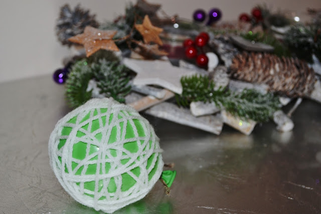 3.Wyciskamy delikatnie włóczkę i nakładamy na napompowany balonik.