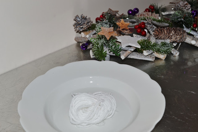 2. W naczyniu rozrabiamy klej z wodą (2:1). Gdy klej mamy już gotowy moczymy w nim włóczkę.