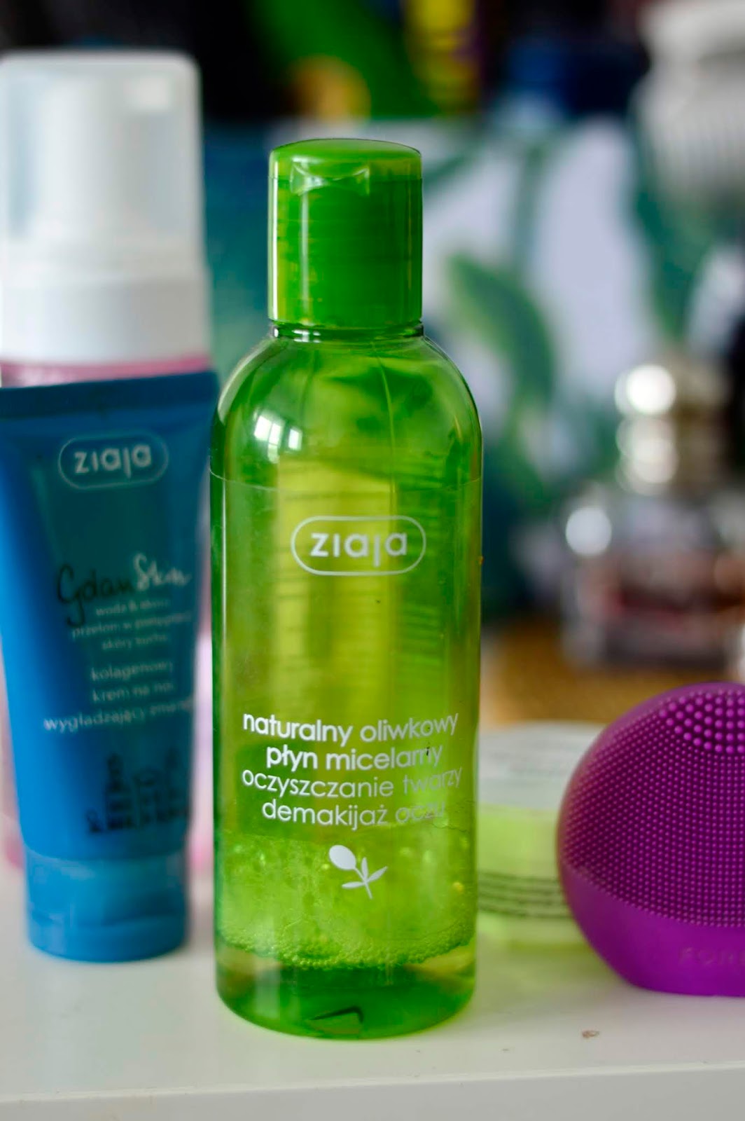 Resztki makijażu usuwam płynem micelarnym. Na tą chwilę stosuję oliwkowy płyn micelarny Ziaja, jest tani i dość wydajny, w zapasie czeka kolejny tej marki tylko z innej serii. Do demakijażu twarzy używam zawsze dużego wacika, natomiast do oczu tego małego.