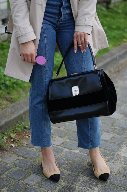 (jean-H&M ,turtleneck shoes - ZARA , coat - BERSHKA , bag - VERSACE ,