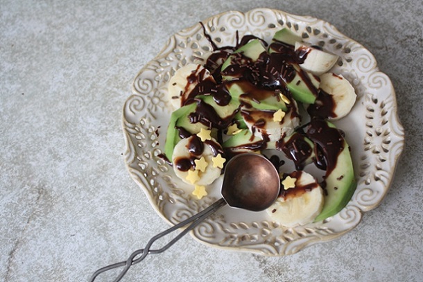 talerzyku. Zanurzamy łyżkę w czekoladzie i polewamy owoce. Voila!