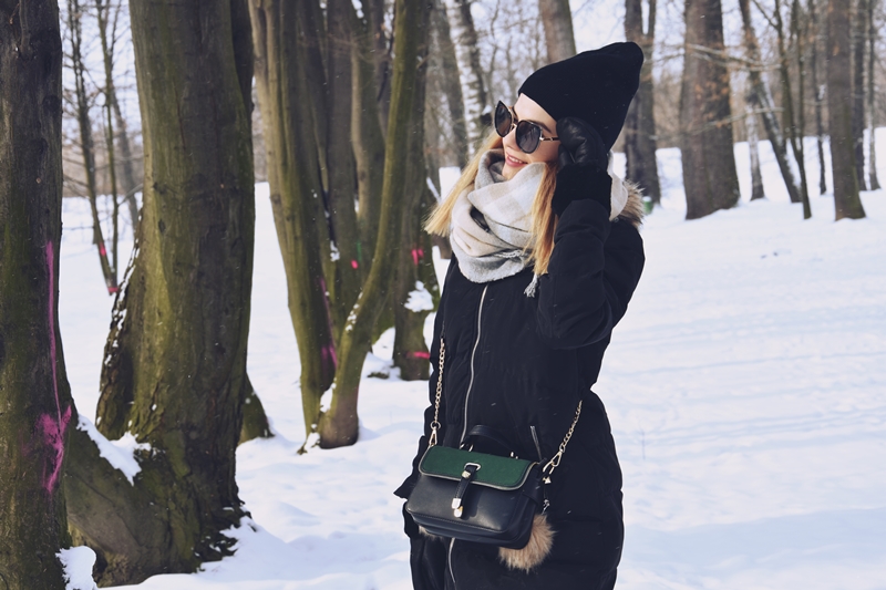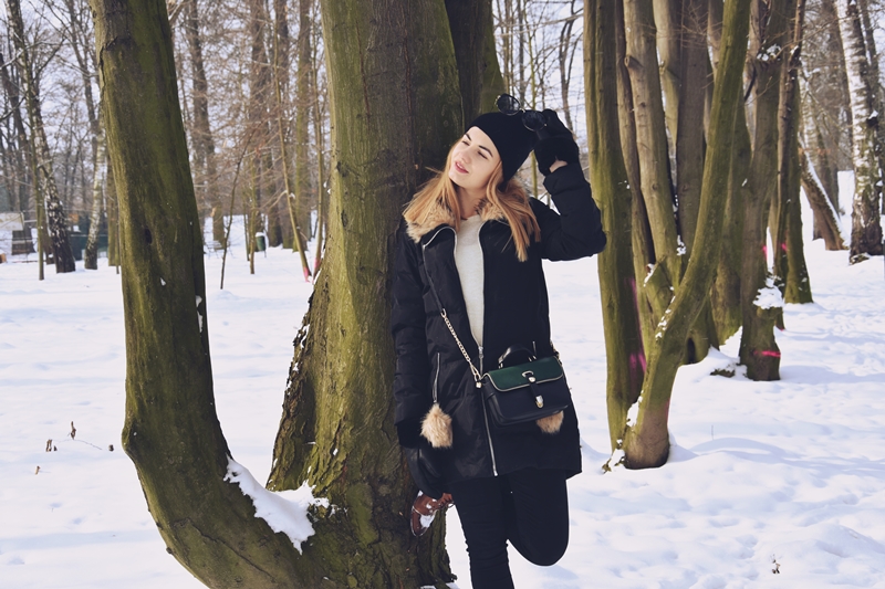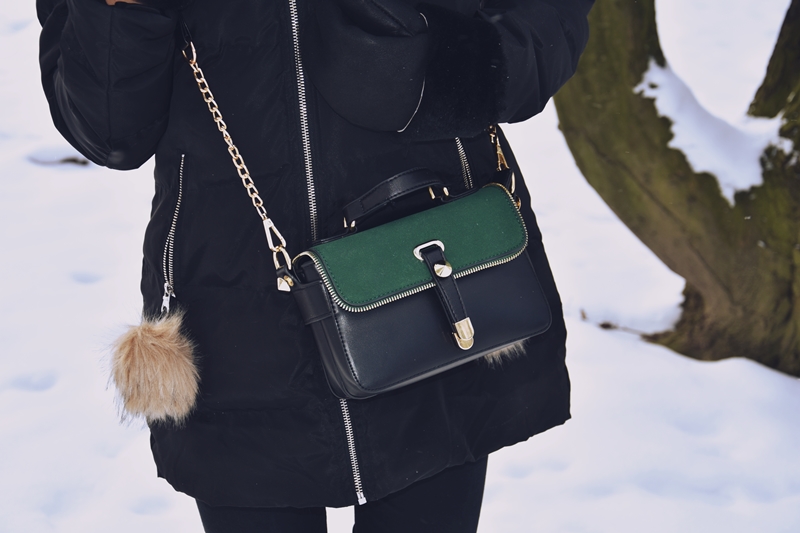 Dzisiejszy klimat zdjęć jest fantastyczny! Piękna zimowa sceneria, chociaż już tęsknie za wiosną i dużą dawką słońca. Z racji tego, iż temperatura dzisiaj była bardzo niska zdecydowałam się na moją ulubioną kurtkę zimową, która pojawiła się już w kilku wpisach. Stylizacja należy do tych z cyklu „codzienny zwyklak”, ale uwagę przykuwają dodatki z ZAFUL. Jednym z nich jest piękna czarno-szmaragdowa torebka, która jest moim „cudeńkiem” w kolekcji torebek, którą posiadam. Bardzo często decyduje się na zakup torebek, ale ta okazała się strzałem w dziesiątkę przede wszystkim dlatego, iż jest bardzo zgrabna i sprawdzi się zarówno w codziennym look’u, jak i eleganckiej stylizacji. Kolejnym elementem są okulary. Co prawda są dość duże, ale ten model akurat zwrócił moją uwagę podczas poszukiwań. Na stronie ZAFUL znajdziecie wiele ciekawych dodatków czy części garderoby w atrakcyjnych cenach. Gorąco polecam. Jakie jest Wasze zdanie na temat tych dodatków, a także całej stylizacji?