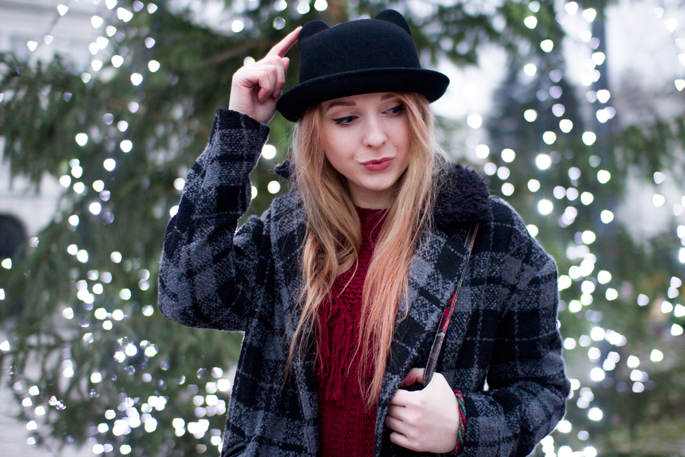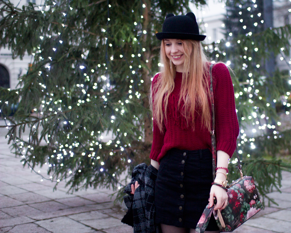 hat - C&A | coat - Troll | sweater - H&M | skirt - Stradivarius | bag - TorebkaStyl | shoes - elilu.pl