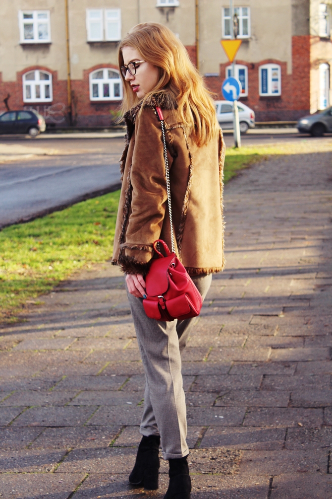 Jakiś czas temu miałam przyjemność robić zdjęcia z przemiłą Klaudią. Zdjęcia mają zupełnie inny klimat niż te, które są w pozostałych postach. Stylizacja bardzo stonowana i prosta, czyli tak jak lubię. Na spodniach możemy zauważyć kratkę, która przez cały czas króluje. Całość jest w tonacji brązów, które moim zdaniem nie są "łatwe" do wystylizowania. Co o tym sądzicie? Lubicie brązy?