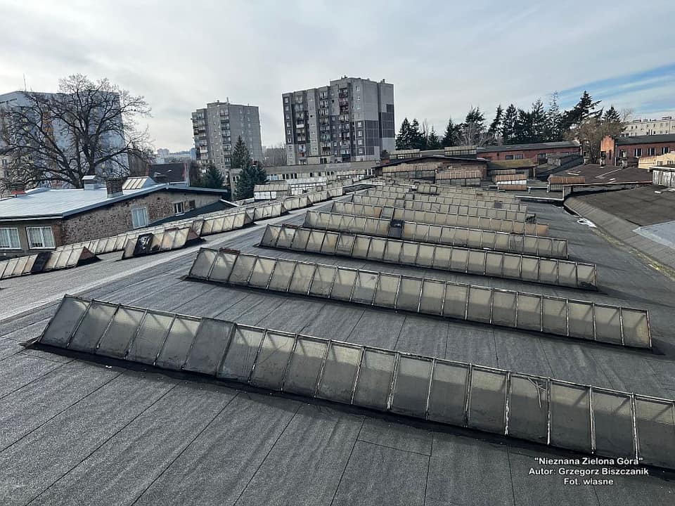 Świetliki nad halami fabrycznymi „Falubazu”. Budynki w tej chwili nie istnieją. Fot. Własne