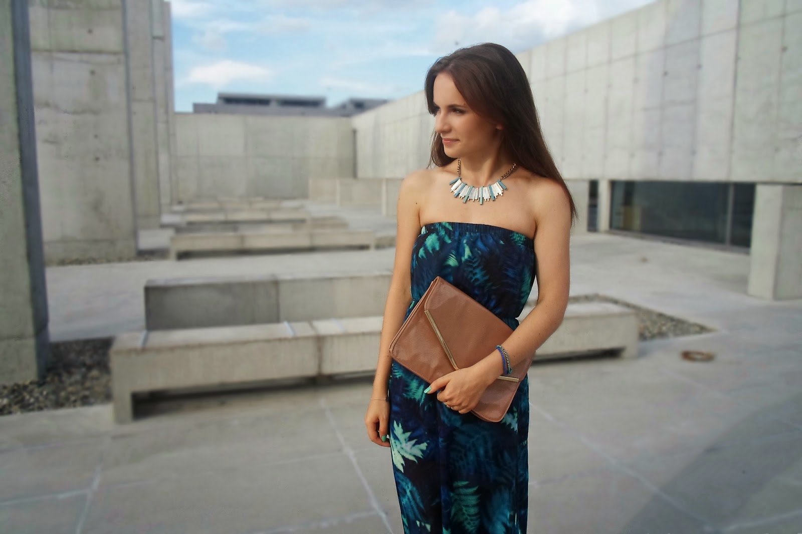 Witajcie! W końcu nadeszły upragnione przez Nas wakacje! Sezon na letnio-świeże zestawy został otwarty. Przedstawiam dziś długą, letnią sukienkę w leśne wzory połączoną z cielistą kopertówką. Ten zestaw znakomicie sprawdzi się na plaże oraz wyjście na miasto. Liczę, iż przypadnie Wam do gustu.