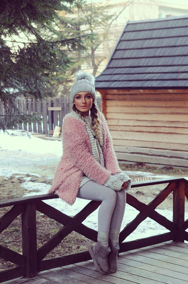 Powiedziałabym, iż stylizacja jest zimowa, gdyby nie chudziutkie legginsy. Sweter jest tak gruby, iż zbędna jest nam ocieplana kurtka. Coś pięknego :-) Uwielbiam takie grube sweterki, gruby wyraźny splot włóczki. Oversizowy krój.. Czy tylko ja jestem fanką tego typu okrycia?