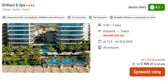 Sprawdźcie też Hotel Epidamn White Sensation w Albanii – opinie i ceny 2026