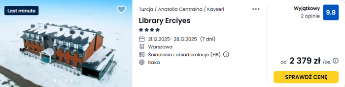 Zimowy wyjazd do Kayseri w Turcji to idealne połączenie śnieżnych widoków i górskiego klimatu Erciyes. Hotel Library Erciyes w Turcji – opinie i ceny oferuje komfortowy wypoczynek blisko tras narciarskich i atrakcji regionu. Wybierz nocleg w Kayseri zimą, jeżeli chcesz aktywnie spędzać czas i wracać do ciepłego, stylowego hotelu. Zarezerwuj pobyt i przeżyj zimowe wczasy w Turcji w wyjątkowym miejscu.