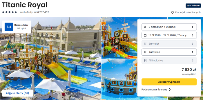 Poniżej przykładowy termin w najlepszej cenie dla rodziny 2+2. Dostępne są też inne terminy