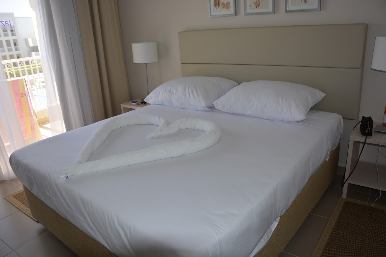 Hotel posiada w ofercie bardzo różne pokoje. Są zykłe pokoje 2-osobowe, pokoje rodzinne, czy z wyjściem do basenu. My w ofercie z Tui wykupiliśmy pokój rodzinny. Składa się on w pierwszej kolejności z pokoju dla dzieci, z dwiema mini kanapami. My z racji tego, iż nie mamy dzieci, używaliśmy tego pokoju do przechowywania walizek, oraz gdy przychodzili po nas znajomi, mogli sobie wygodnie usiąść i poczekać :) Na korytarzyku jest duża szafa na ubrania, z sejfem wewnątrz, półki oraz minibarek (dodatkowo płatny). Łazienka dobrze wyposażona. Każdego dnia uzupełniana o zużyte kosmetyki. Do dyspozycji są żele, szampony, czepek na wlosy dla pań, czy mini zestaw do szycia, oraz duże, mięciutkie ręczniki wymieniane co dzień. Prysznic przestronny, otwarty, z wygodną półeczką wewnątrz na kosmetyki. Sama sypialnia składa się z łoża małżeńskiego, szafeczek nocnych, oraz biurka z zestawem do parzenia kawy/herbaty i mini przekąskami, oraz oczywiście telewizorem, z dostępem do kilku polskich kanałów. Pokój z balkonem, z którego mieliśmy widok na baseny, aquapark i na lewo na bar zewnętrzny. Bardzo dobra klimatyzacja z climatronickiem zarówno w sypialni, jak i pokoju dla dzieci. W cenie również 150 MB internetu na pokój. Dodatkowo każdego dnia duża butelka wody dostarczana do pokoju przy sprzątaniu.