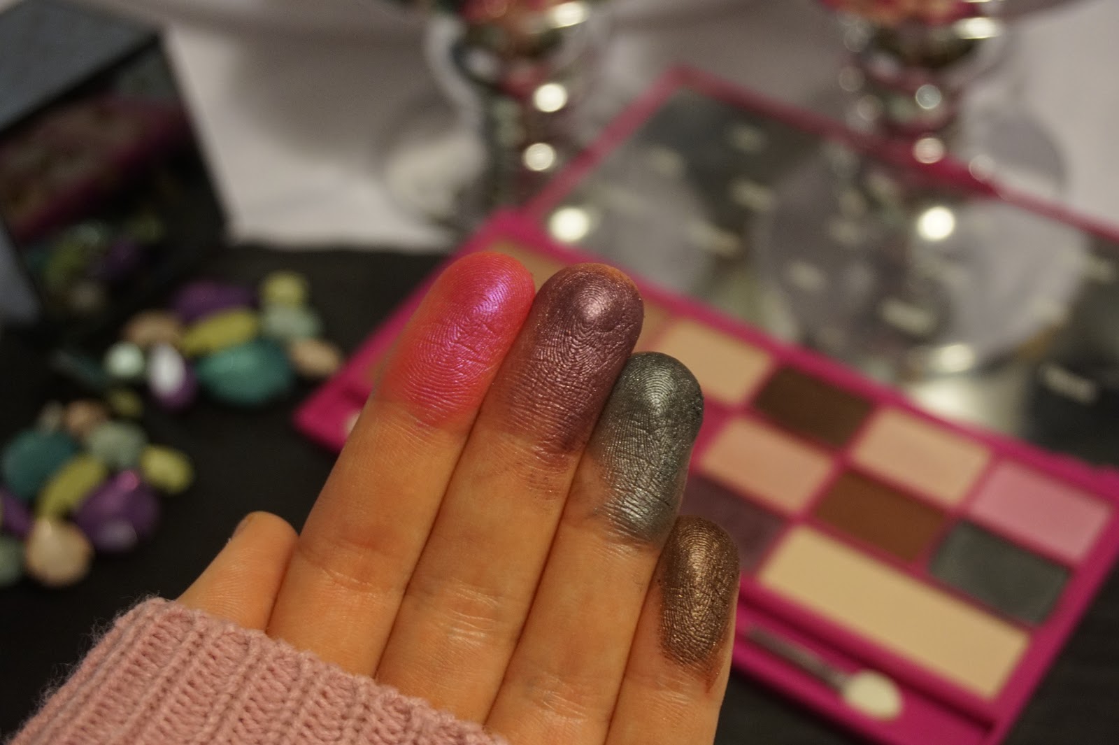 Pisałam już o ogólnym wrażeniu, teraz przyszedł czas na opisanie tego, co znajdziemy w paletce. Cienie na pierwszy rzut oka prezentują się bardzo dobrze. Dobrze napigmentowane kolory zarówno matowe, jak i błyszczące (dzięki temu używa się je z przyjemnością). Jedyny problem cieni to kiepskie blendowanie. Trzeba się trochę natrudzić, żeby dobrze rozetrzeć kolory na powiece. Na szczęście jednak nie obsypują się i są dosyć trwałe. Bez wątpienia warto wydać około 30 złotych na ten model paletki. jeżeli dopiero zaczynacie swoją przygodę z makijażem, to będzie bardzo dobry wybór.