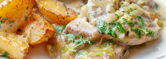To jedno z tych dań, które robią się praktycznie same, wystarczy podsmażyć mięso, ugotować w sosie, na koniec dodać podsmażone pory. Danie w sam raz na zimnowe i chłodniejsze dni, kiedy chcemy podać coś bardziej sycącego i tradycyjnego, z dostępnych i prostych składników. Karkówka wychodzi miękka, sos gęsty, a całość pasuje do prostych dodatków, jak ziemniaki tłuczone lub kasza. Koniecznie z orzeźwiającą surówką, np. z kiszonek.