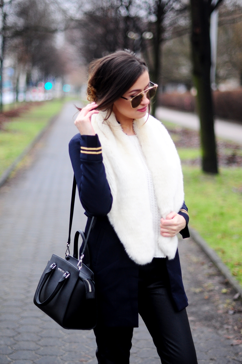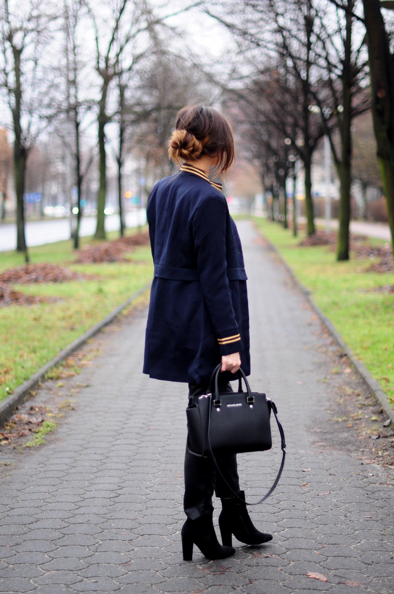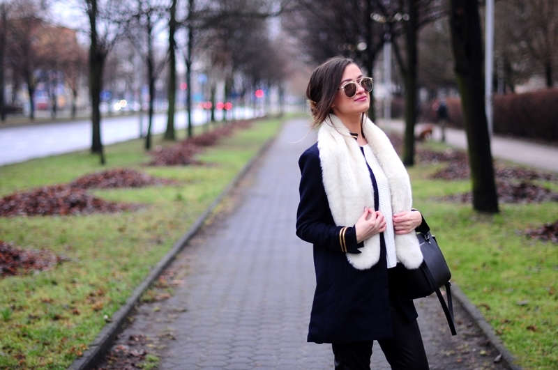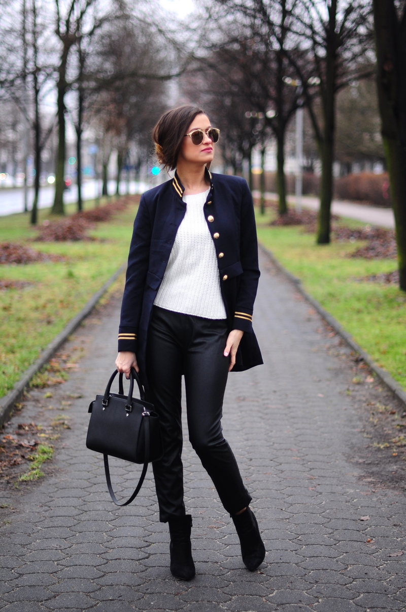 Dzisiaj prosto i klasycznie, czyli tak jak lubię :) Klasykę niemniej przełamują złote zdobienia na płaszczu i odblaskowe okulary. Co sądzicie o takim połączeniu?