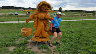 Pogoda tego dnia nie zachęcała zbytnio do kąpieli, wiał lekki zimny wiatr, niebo było częściowo przykryte chmurami a temperatura nie była zbyt wysoka. Pomimo to Ogórek wskoczył do wody! Ja wolałem bardziej "suchą" kąpiel w wiadrze drewnianej karczmarki, której pomnik stał nieopodal restauracji.