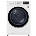 Dzięki technologii pompy ciepła suszarka chroni tkaniny przed uszkodzeniami. Posiada też czujniki wykrywające poziom temperatury i wilgotności, na podstawie których dopasowuje czas suszenia. Urządzenie łączy się z aplikacją SmartThinQ. Należy do klasy energetycznej C i zużywa 94 kWh energii na 100 cykli. Oferuje takie programy jak Pościel, Szybki 30 oraz Wełna.