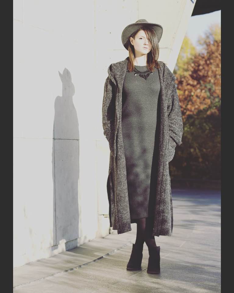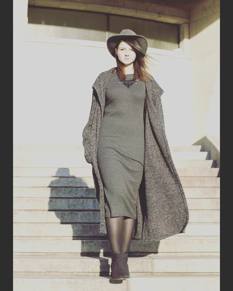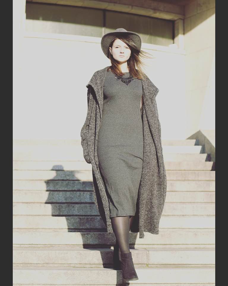 Total look to moje ulubione rozwiązanie ostatnimi czasy - szara sukienka wykonana jest z prążkowanego materiału, który ostatnio zawładnął sieciówkami. Moja z mini golfem jest z najnowszej kolekcji Zary.