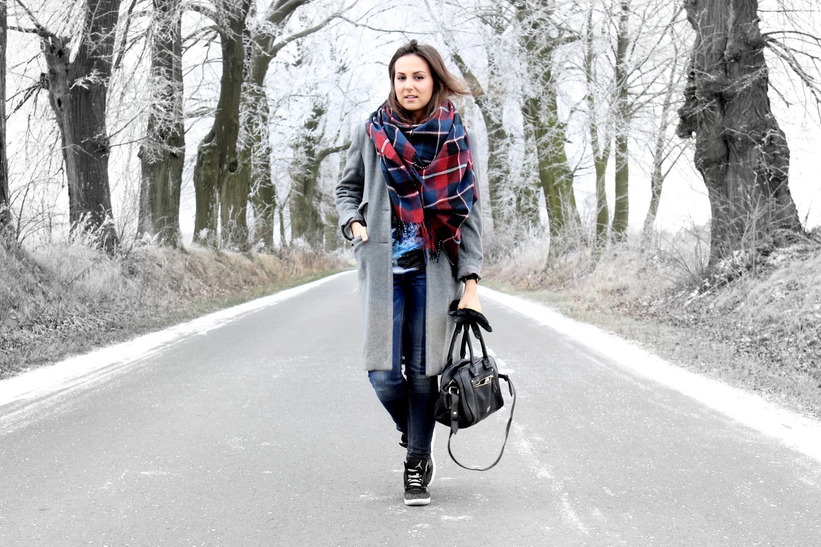 szalik- New Look | płaszcz - second hand | torebka - Mango | buty - Nike Jordan | spodnie -Stradivarius